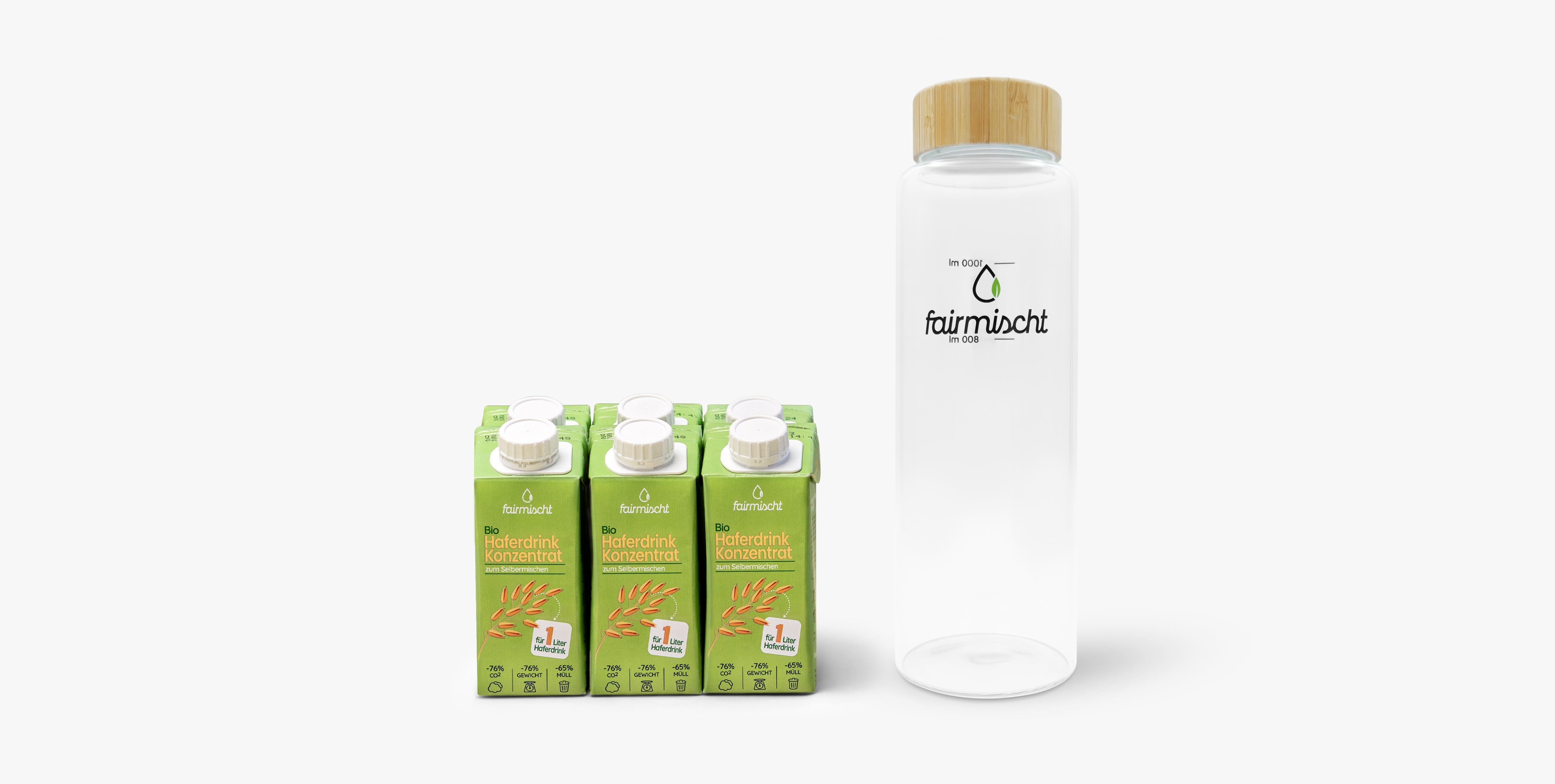 Mit 6 leckeren Konzentraten und einer hochwertigen Glasflasche zum Mischen, genießt du deinen Lieblings-Drink jetzt noch nachhaltiger und bequemer.